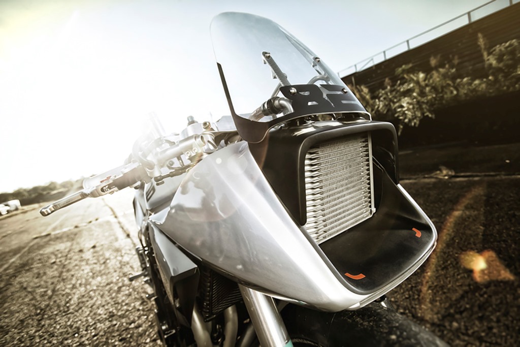 Le bras oscillant inversé raccordé à une surprenante cinématique de suspension arrière à double amortisseur, complète l’ensemble, qui se dote par ailleurs de superbes étriers de frein signés Nissan, d’une magnifique fourche inversée et de pneus Slicks Continental… pour un résultat des plus impressionnants !