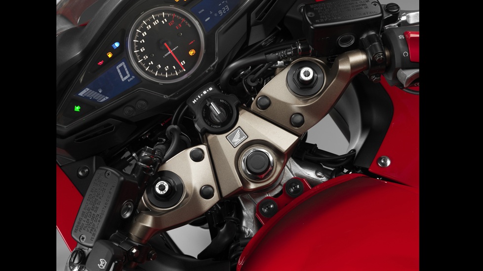 La belle enfile donc une nouvelle robe. Côté carénage, Honda joue la carte de la sobriété. On remarquera tout de suite les surfaces pleines avec très peu de traits. Le radiateur a même été retiré des flancs pour aller se placer à l’avant du moteur. Plus besoin des prises d’air sur le côté donc.