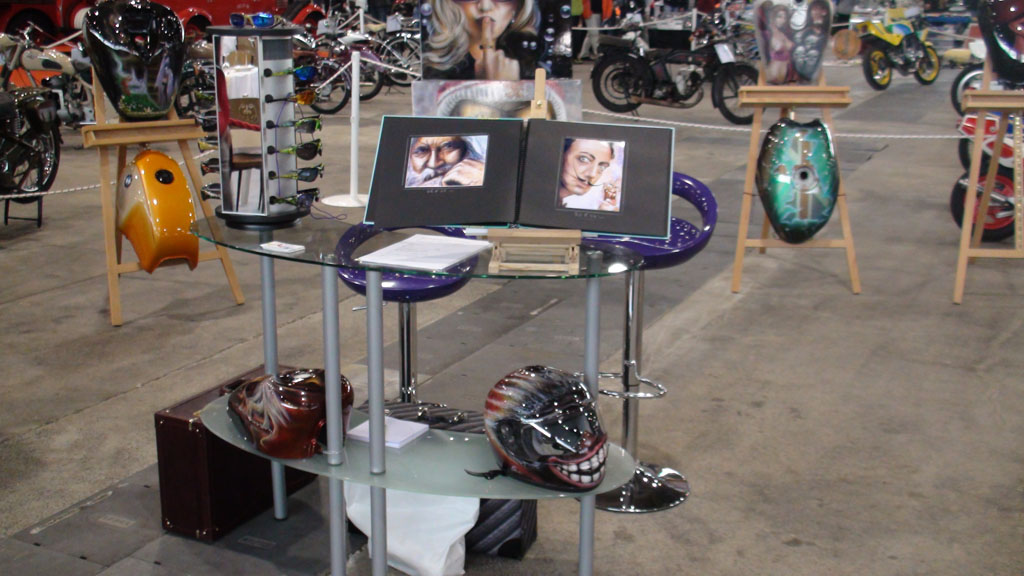 Salon Epoqu’Auto 2012 ou j’exposais aussi mes réalisations sur casque et réservoirs parmi Les plus belles voitures et motos de collection : Près de 600 passionnés et collectionneurs de véhicules anciens exposaient leurs trésors à Lyon durant trois jours. des modèles de légende. Près de 40 000 visiteurs Ont assistés au 34e Salon Epoqu’Auto