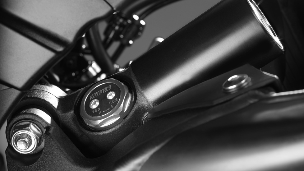 Suspension avant : fourche inversée Showa « Big Piston » réglable en compression et en détente, débattement 120 mm
