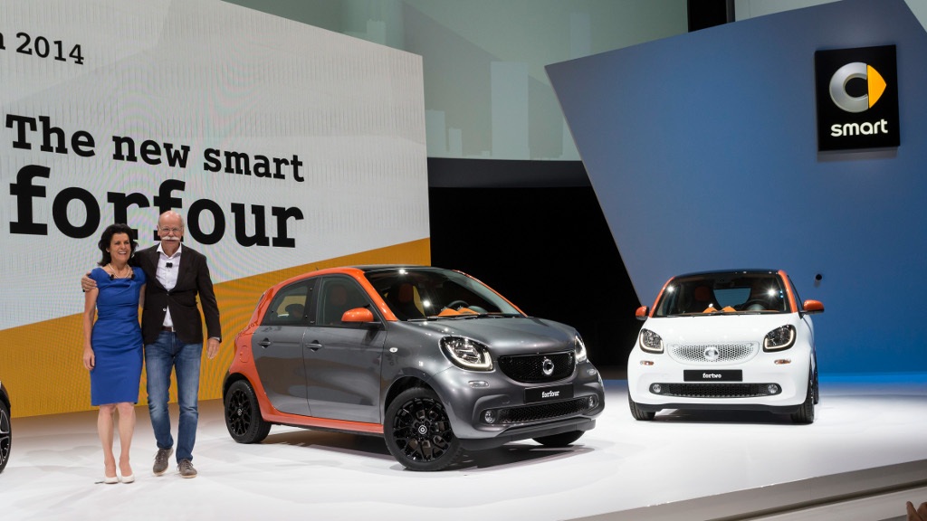 Concept-car en 1994, lancé en 1997, et devenue aujourd’hui la smart Fortwo, cette Micro City Car restera encore, et pour longtemps, une star des villes européennes. La troisième génération débarque, accompagnée de la version 4 portes, 4places : la Forfour. C’est en octobre que ces nouvelles Smart 2014 seront exposées au Mondial de l’Auto 2014 à Paris, et seront lancées à un prix de départ estimé à environ 10.000 euros.