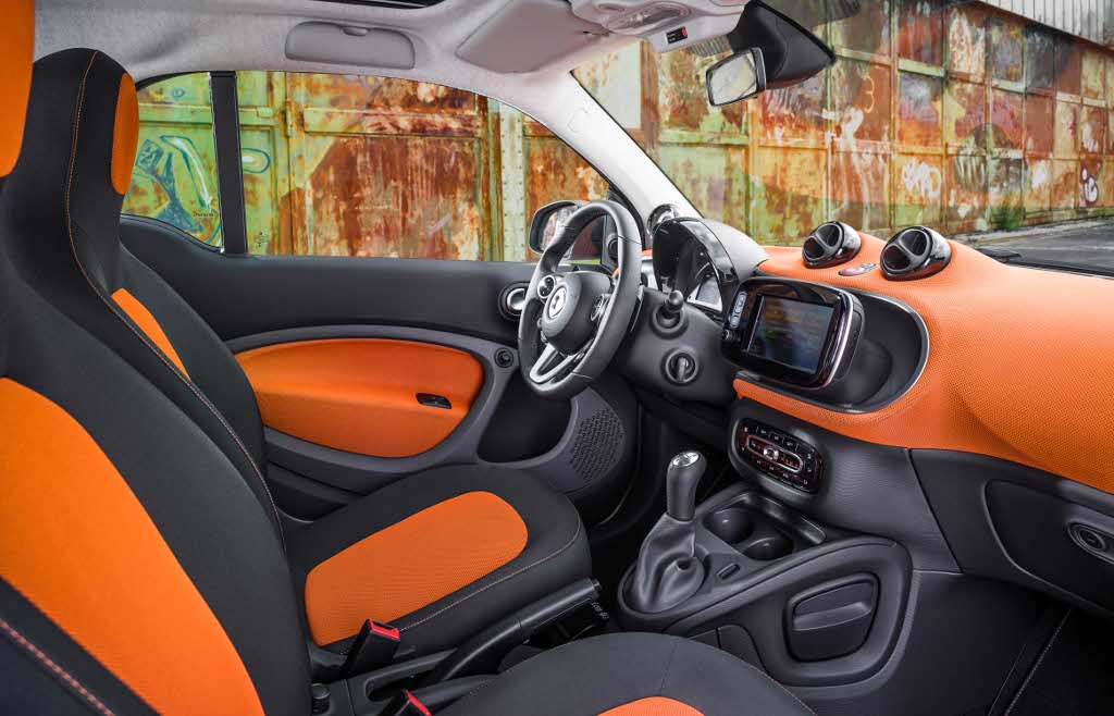 Côté design, on assiste donc à du changement au niveau des formes. La nouvelle génération se présente avec plus de reliefs. Le capot devient un peu plus horizontal et elle se dote de nouvelles optiques avec diodes en U à l’avant où une nouvelle calandre percée de petits trous accueille en son centre le logo de la marque. . À l’arrière,, les feux sont dorénavant cerclés, mais on retrouvera tout de même les ouïes permettant d’aérer le moteur. Les poignées sont dissimulées dans le creux latéral pour la Fortwo, mais elles restent bien visibles sur la Forfour.