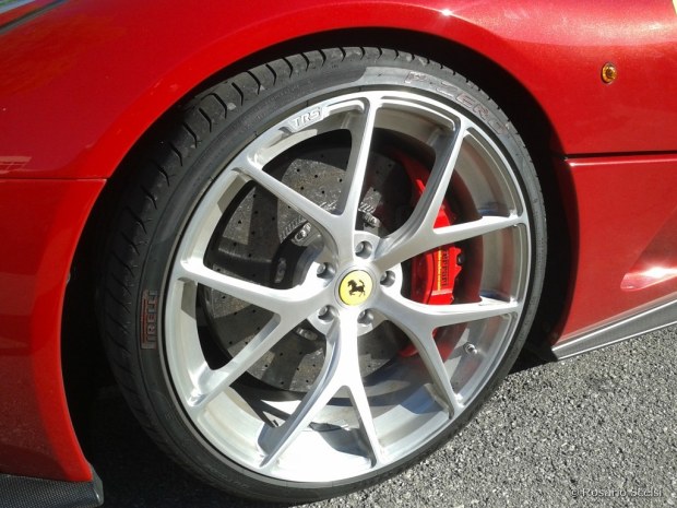 Rappelez-vous de la calandre de la F12 de la gamme actuelle. Sur la TR celle-ci cède la place à un modèle style nid d’abeilles auquel aura été rajouté une lèvre aérodynamique en fibre de carbone qui donne à la voiture un air des plus agressifs. À l’arrière aussi les changements sont flagrants. On se rappelle du diffuseur arrière en forme de T de la berline F12 mais ici des travaux conséquents ont été réalisés pour permettre un écoulement de l’air plus efficace. Tout a été fait de façon à privilégier l’aérodynamique de la voiture. Dans cette même optique, à la place du toit, les deux extensions visibles à l’arrière des baquets contribuent eux aussi, non seulement à l’esthétique mais aussi aux performances aérodynamiques de l’engin.
