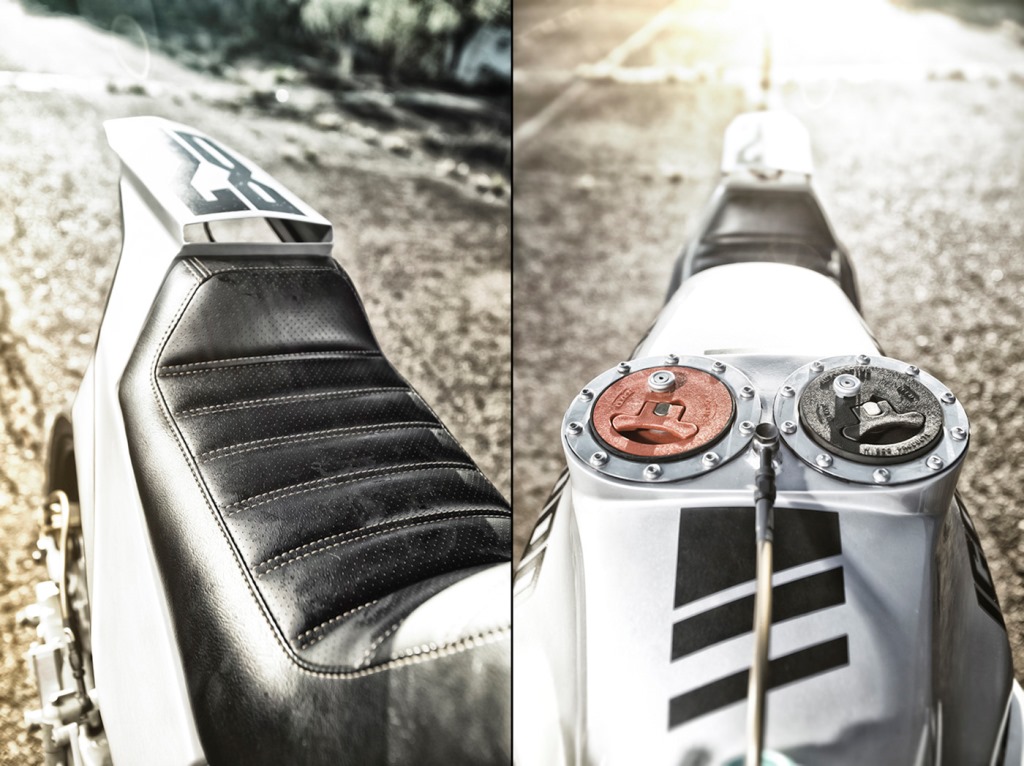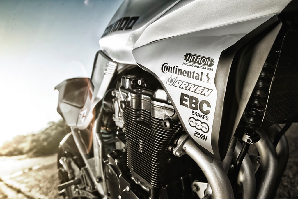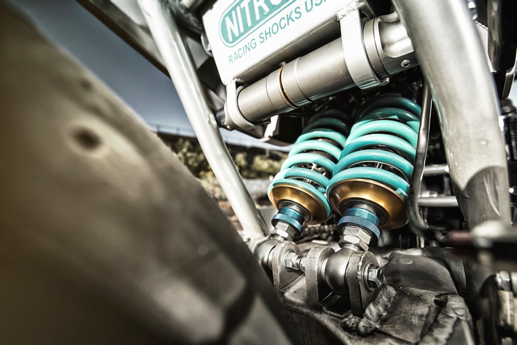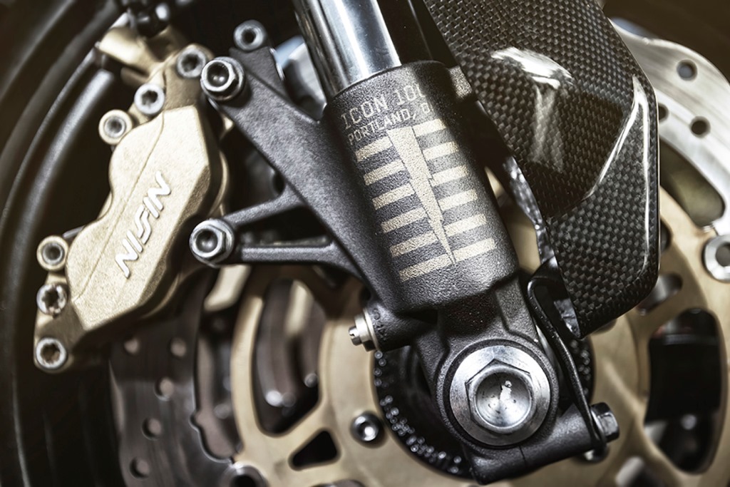 Le bras oscillant inversé raccordé à une surprenante cinématique de suspension arrière à double amortisseur, complète l’ensemble, qui se dote par ailleurs de superbes étriers de frein signés Nissan, d’une magnifique fourche inversée et de pneus Slicks Continental… pour un résultat des plus impressionnants !